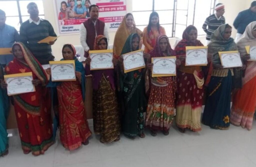 तहसील मुख्यालय पर स्थित सभागार में मिशन शक्ति के तहत ग्राम पंचायत तम्मरपुर की 13 महिलाओं को आवासी पट्टा प्रमाण पत्र एवं 6 लोगों को वरासत करके खतौनी प्रदान किया गया। जहां प्रमाण पत्र पाकर महिलाओं के चेहरे खिल गए वहीं सभा में मुख्य अतिथि पूर्व सांसद नीलम सोनकर ने केंद्र प्रदेश सरकार के मुखिया की सराहना करते हुए कहा कि सरकार द्वारा महिलाओं के हित में अनेक कार्य किया जा रहे हैं अब महिलाओं के पहचान स्वत हो रही है