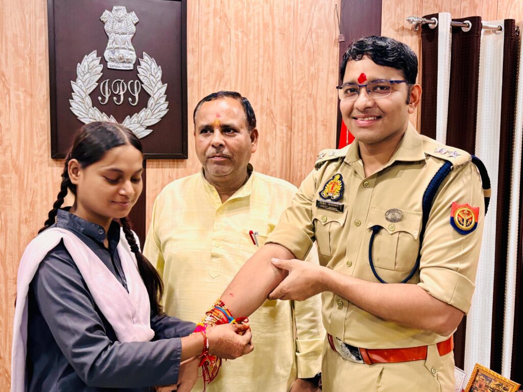 रक्षा बंधन पर्व के अवसर पर सरस्वती विद्या मंदिर की छात्राओं व ब्रह्मकुमारी आश्रम गोण्डा की बहनों ने पुलिस अधिकारियों को बांधी राखी, जताया आभार और विश्वास, पुलिस बल को समर्पित किया स्नेह