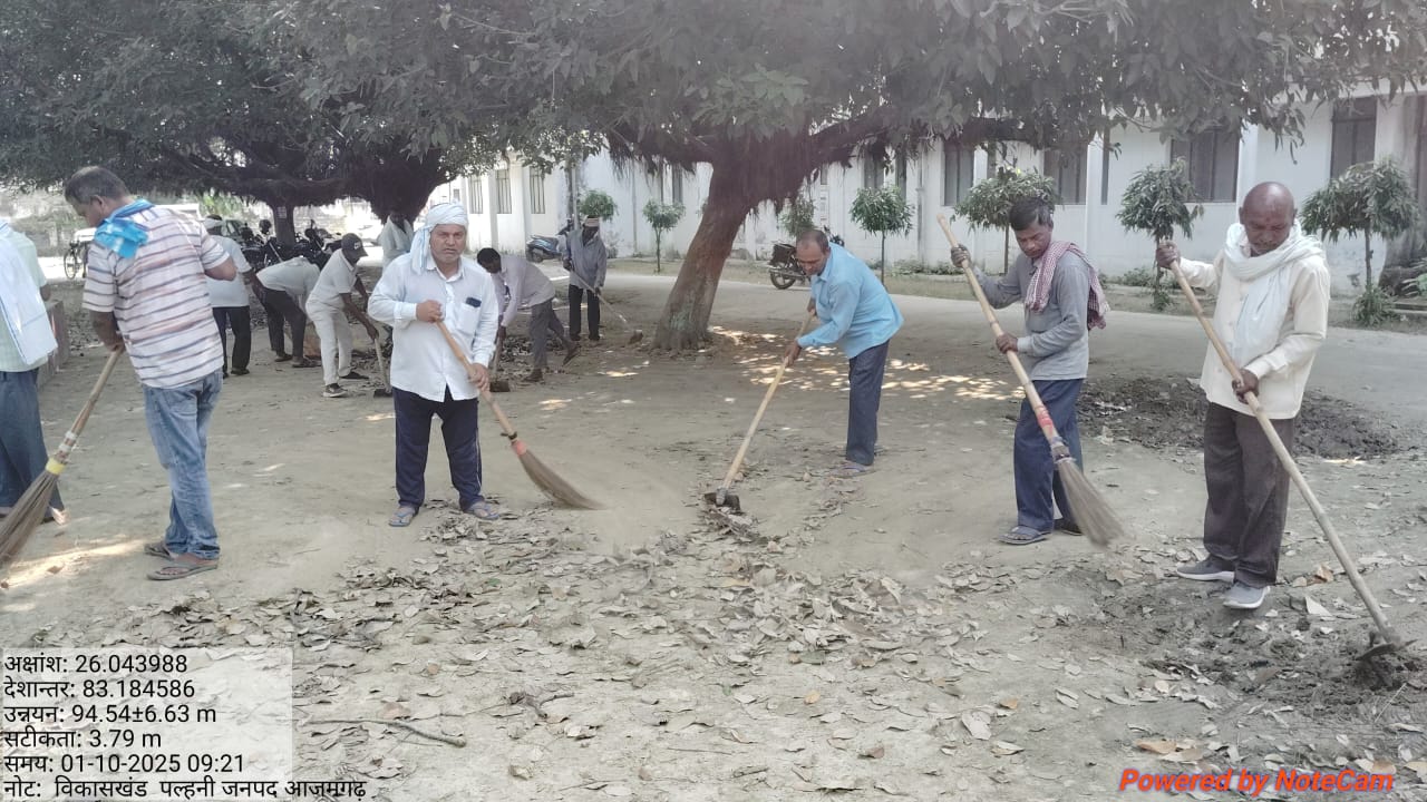 आजमगढ़ दशहरा को देखते हुए कार्यालय धार्मिक स्थल जहां मां दुर्गे की स्थापना हुआ है वहां के आसपास के प्रागंण के रोड के दोनों पटरी पर विशेष साफ सफाई करते हुए जिला पंचायत राज अधिकारी जी के आदेश क्रम में विकासखंड के सभी ग्राम पंचायत में स्वच्छ भारत मिशन के तहत स्वच्छता अभियान चलाया जा रहा है 17 सितंबर से 2 अक्टूबर तक अधिकारी गण कर्मचारी गण समाजसेवी नेता गण सरकार के प्रेरणा से विशेष साफ सफाई ग्राम वासियों के साथ करते हुए आज दिनांक पहली अक्टूबर मंडली कार्यालय कमिश्नरी ग्राम पंचायत जमालपुर में विशेष साफ सफाई करते हुए इस समय जो डेंगू मलेरिया का प्रकोप चल रहा है उससे निस्तारण पाने के लिए झाड़ू लगाते हुए कचरा हटाते हुए घास की कटाई करते हुए दावा का छिड़काव करते हुए इसी तरह पूरे जनपद में ग्रामीण सफाई कर्मचारियों द्वारा विशेष स्वच्छता अभियान चलाया जा रहा है आज के साफ सफाई में जिला अध्यक्ष सीपी यादव वरिष्ठ जिला उपाध्यक्ष गुलाब चौरसिया बाबू राम मंत्री सेक्टर प्रभारी राज बहादुर चौधरी सेक्टर प्रभारी विश्केश यादव सेक्टर प्रभारी वीरेंद्र कुमार अब्दुल विनोद सिरमोद अरविंद सुभाष मुन्ना चौहान बृजेश यादव गुलाब विनोद कुमार रीता चौहान हीरा श्रीवास्तव किरण श्री राम राजेश रामबचन दिलदार झूलई शेखमन्नू सीमा मौर्य सुमित्रा नूरजहां आदि लोग मौजूद रहे मंगल कार्यालय कमिश्नरी ग्राम पंचायत जमालपुर विकासखंड पल्हनी जनपद आजमगढ़