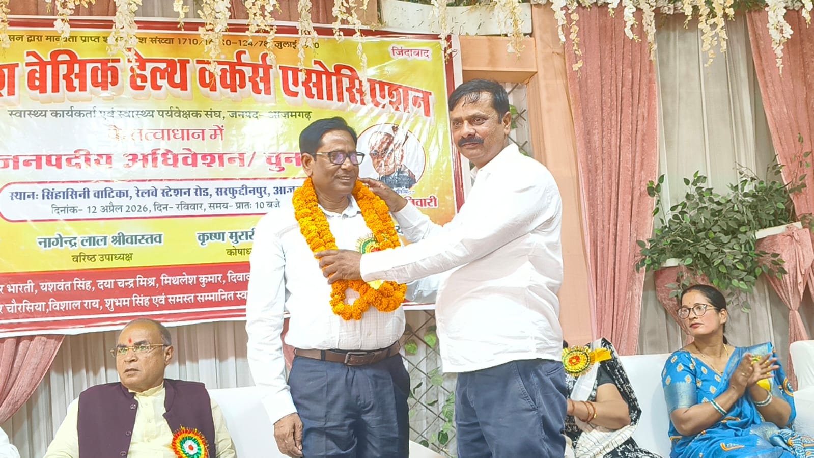आजमगढ़। उत्तर प्रदेश बेसिक हेल्थ वर्कर्स एसोसिएशन, जनपद शाखा-आजमगढ़ द्वारा रविवार, 12 अप्रैल 2026 को सिंहासिनी वाटिका में जनपद स्तरीय अधिवेशन एवं चुनाव कार्यक्रम का आयोजन किया गया। जिसमें कार्यक्रम में मुख्य अतिथि मुख्य चिकित्सा अधिकारी एन आर वर्मा व विशिष्ट अतिथि के तौर पर धनंजय तिवारी मौजूद रहे कार्यक्रम का शुभारम्भ प्रातः 10:00 बजे मुख्य अतिथि मुख्य चिकित्सा अधिकारी एन आर वर्मा द्वारा दीप प्रज्ज्वलन के साथ हुआ।
