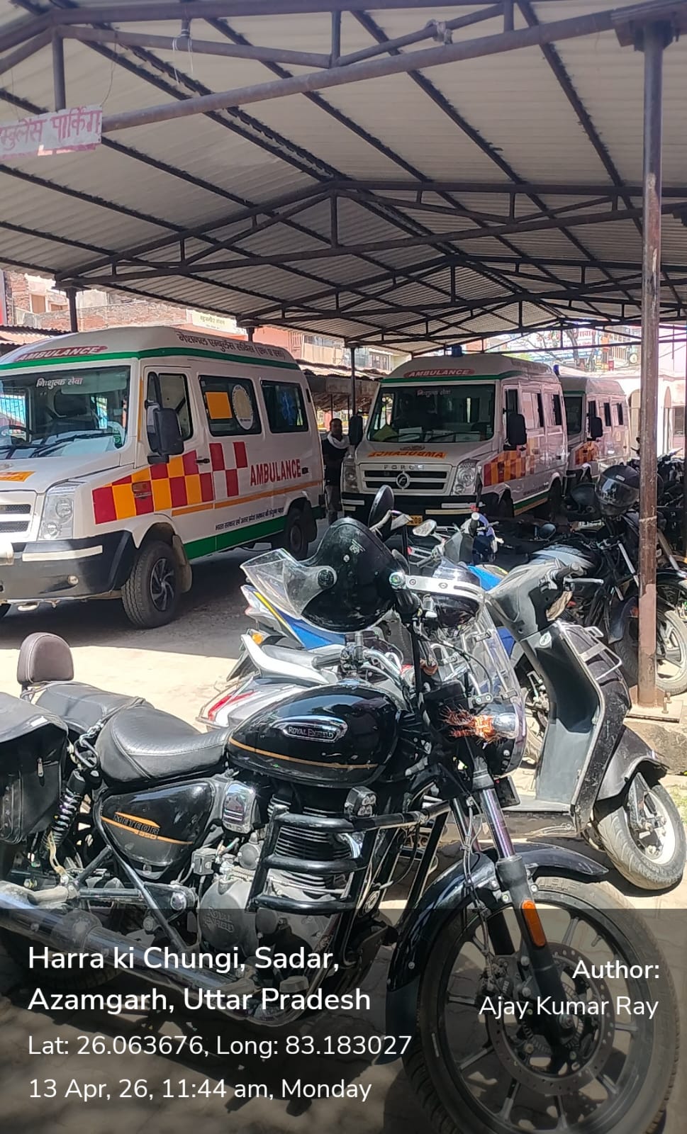 जिला महिला चिकित्सालय आजमगढ़ एंबुलेंस पार्किंग की जगह अवैध बाइक वालों ने कब्जा जमा रखा है जिसकी वजह से एंबुलेंस को जिला महिला चिकित्सालय में खड़ा होने में बहुत ही दिक्कतों का सामना करना पड़ रहा है इस अवैध कब्जा की वजह से एंबुलेंस को अस्पताल में अंदर आने में और बाहर जाने में काफी दिक्कतों का सामना करना पड़ रहा है