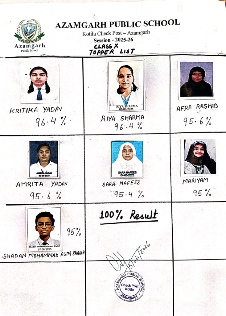 आजमगढ़ पब्लिक स्कूल का CBSE कक्षा 10वीं में उत्कृष्ट प्रदर्शन: शत-प्रतिशत परिणाम, 21 विद्यार्थियों ने पाए 90%+, 7 ने 95%+ अंक किए हासिल।