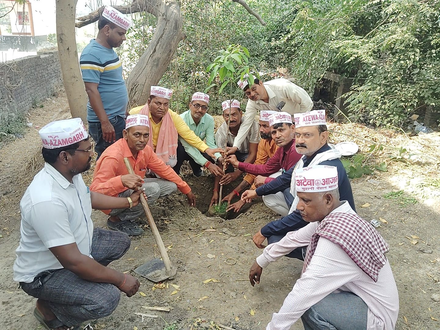 आजमगढ़ अटेवा के शिक्षक एवं ग्रामीण सफाई कर्मचारियों द्वारा बिटिया के शादी के उपलक्ष्य में आज रविवार को आम एवं अमला का पौधा लगाते हुए।