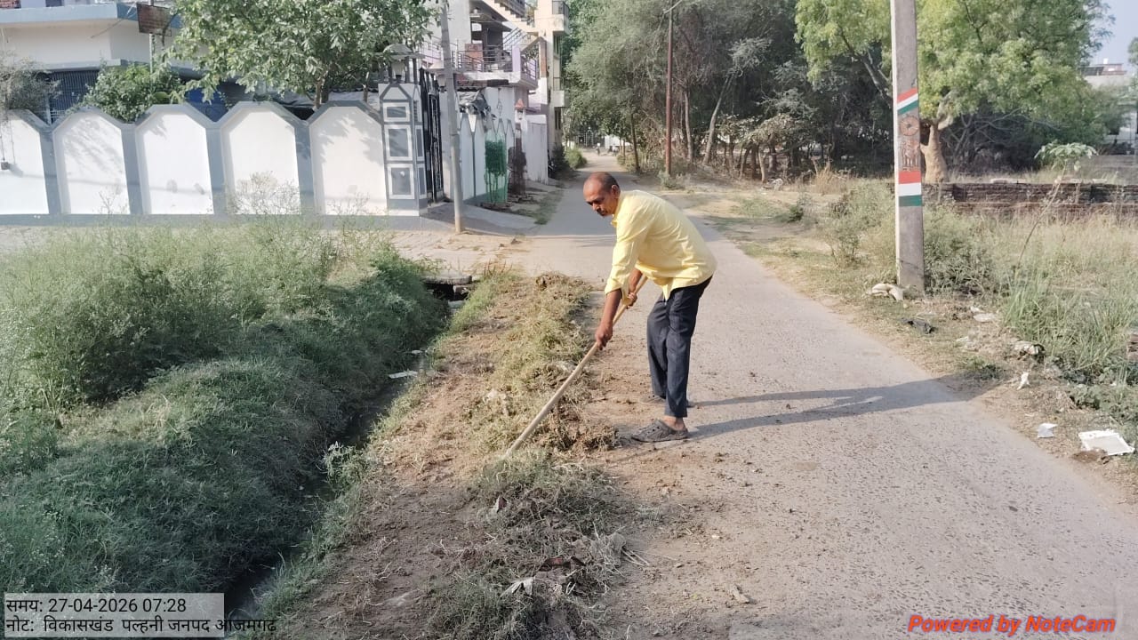 आजमगढ़ स्वच्छता का महत्वपूर्ण हिस्सा बनिए और स्वच्छता अपनाइए नए-नए रोगों को भगाइए संचारी रोकथाम नियंत्रण अभियान के तहत जनपद के जिला पंचायत राज अधिकारी पवन कुमार के निर्देश पर विकासखंड के सभी ग्राम पंचायत में ग्रामीण सफाई कर्मचारियों द्वारा विशेष स्वच्छता अभियान चलाया जा रहा है इस समय जो तरह-तरह का रोग का प्रकोप चल रहा है उससे निस्तारण पाने के लिए अपने-अपने ग्राम पंचायत में बाजार टोला मोहल्ला में साफ सफाई करते हुए सफाई के प्रति लोगों को जागरुक करते हुए जिससे कि रोगों पर नियंत्रण पाया जाए आज दिनांक 27 अप्रैल 2026 को दिन सोमवार को राजस्व ग्राम चकगोरया में ग्राम प्रधान जी के देखरेख में नाली की सफाई करते हुए कचरा हटाते हुए झाड़ू लगाते हुए चुना का छिड़काव करते हुए इस समय शादी विवाह का कार्यक्रम चल रहा है वहां-वहां के प्रांगण के आसपास साफ सफाई किया जा रहा है हम सब ने ठाना है स्वच्छ भारत बनाना है इसी नारे के साथ अपने कर्तव्यों का निर्वहन करते हुए गुलाब चौरसिया अभय चौहान आदि लोग मौजूद रहे राजस्व ग्राम चकगोरया विकासखंड पल्हनी जनपद आजमगढ़