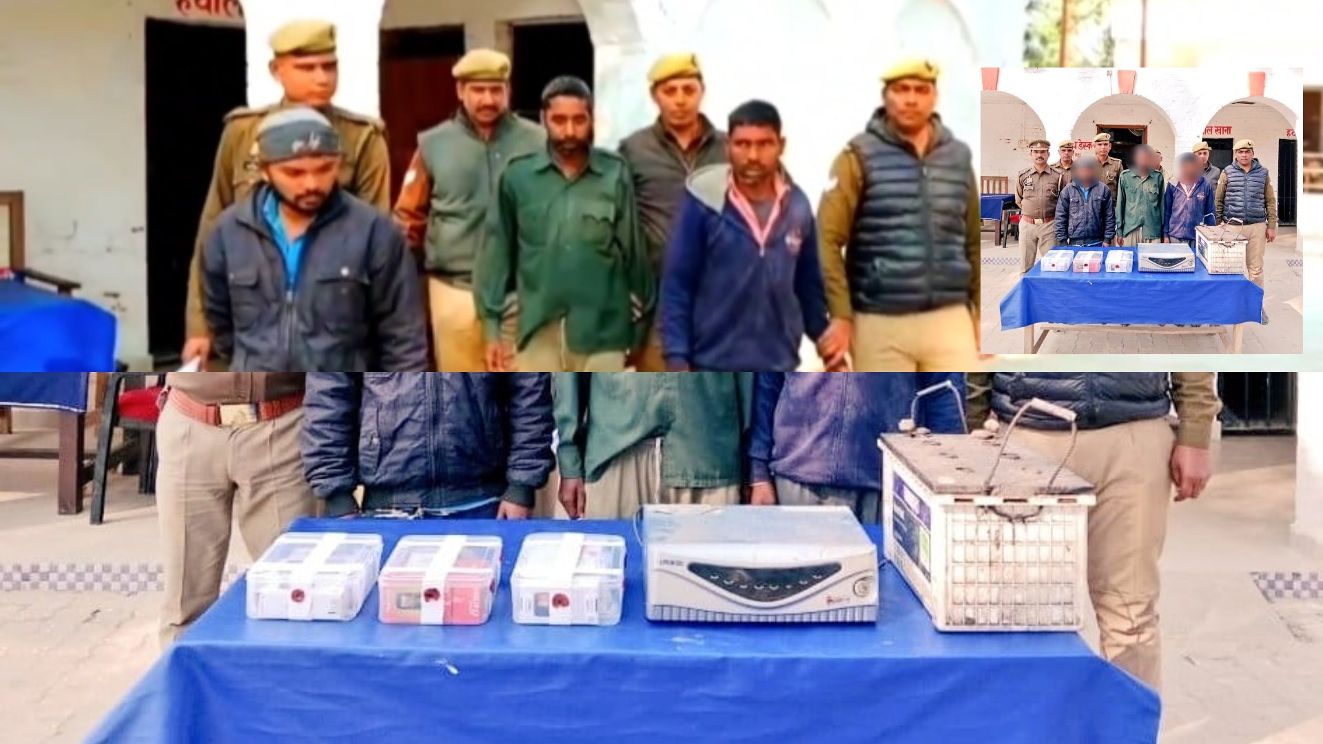 पुलिस अधीक्षक गोण्डा श्री विनीत जायसवाल द्वारा अपराध एवं अपराधियों के विरूद्ध चलाये जा रहे अभियान के क्रम में अपर पुलिस अधीक्षक गोण्डा श्री राधेश्याम राय के पर्यवेक्षण व क्षेत्राधिकारी सदर सुश्री शिल्पा वर्मा के नेतृत्व में गठित थाना धानेपुर पुलिस टीम द्वारा कड़ी मेहनत व अथक प्रयासोपरांत मु0अ0सं0-390/23 धारा 457,380 भादवि से सम्बन्धित घटना का सफल अनावरण करते हुए 03 अन्तर्जनपदीय शातिर चोरों- 01. लालबाबू, 02. ब्रह्मानन्द सोनकर व 03. अनोखी को साहबगंज तिराहा के पास से गिरफ्तार कर उनके कब्जे से 01 अदद इनवर्टर, 01 अदद बैट्री, 20 अदद मोबाइल फोन, 01 आधार कार्ड, 01 पहचान पत्र व 01 चेकबुक बरामद किया गया।