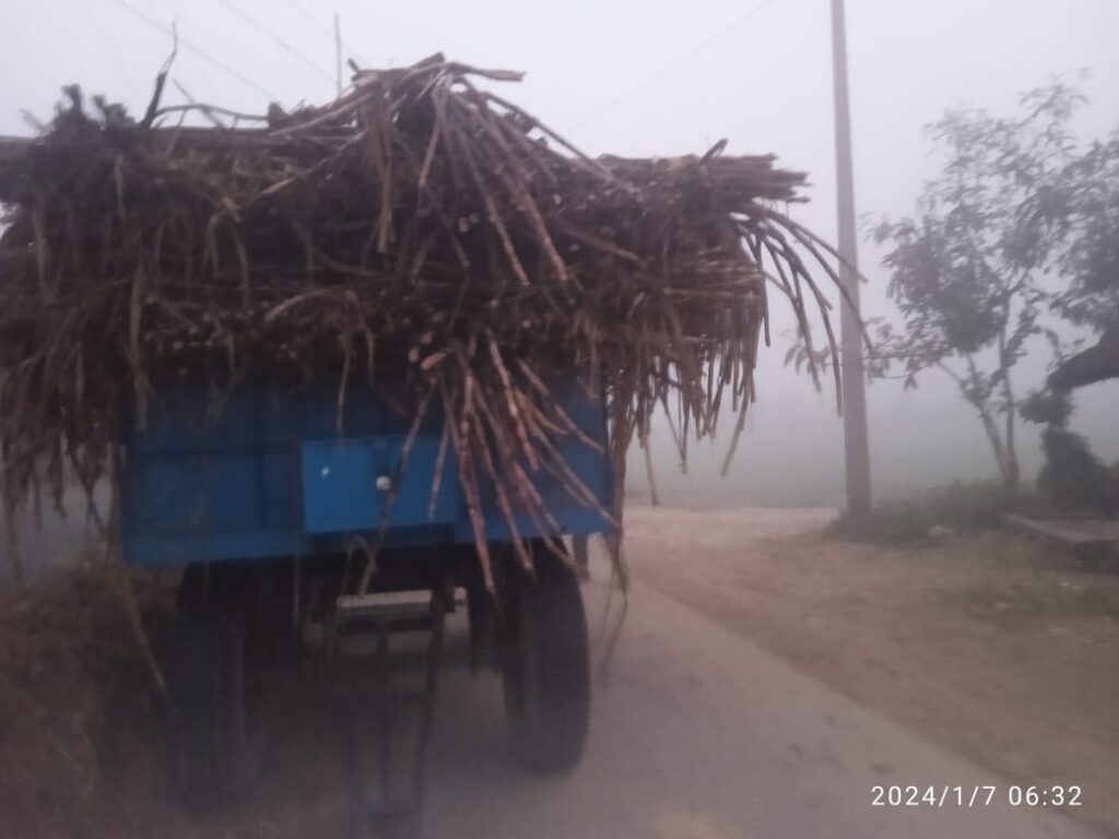 आज़मगढ़! फूलपुर कोतवाली के अंतर्गत कौडिया से दुर्वाशा मार्ग पर किसानो की ट्राली रोड पर खड़ी रहती है! जिससे दुर्घटनाए कि संभावना बनी रहती है! वही क्षेत्र के दारोगा की नजर नहीं जाती है! जिससे दुर्घटनाए होने की संभावना बनी रहती है! कड़ाके की ठंड है! वही साथ ही साथ घना कोहरा भी रहता है! गन्ना की कटाई तेजी से चल रही है! मगर कुछ लापरवाह किसान गन्ने से लदी ट्राली रोड पर खड़ी कर देते हैं जिससे दुर्घटना की संभावना होती है!
