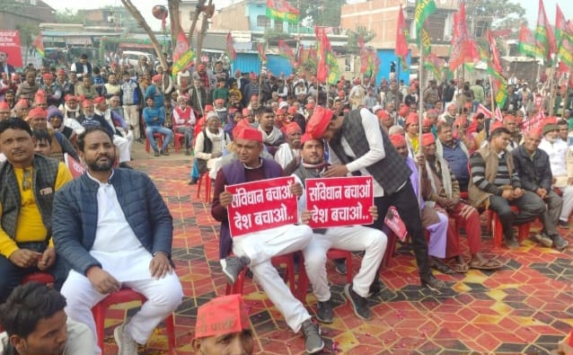 आजमगढ़। समाजवादी पार्टी के अतरौलिया विधायक संग्राम यादव के नेतृत्व में एक दशक से जर्जर अवस्था में पड़े अहरौला कप्तानगंज मार्ग को बनवाने को लेकर मड़ना बाजार से बस्ती भुजबल 3 किलोमीटर तक जनाक्रोश पद यात्रा निकाल विरोध प्रदर्शन किया गया। यात्रा में शामिल लोग ‘अहरौला कप्तानगंज मार्ग बनाना है लोकतंत्र बचाना है, भाजपा को हटाना है, भाजपा सरकार निकम्मी है भाजपा सरकार बदलनी है’ के नारे लगा रहे थे। हजारों की संख्या में करीब 1:30 बजे शुरू हुई यह यात्रा लगभग 2:30 बजे बस्ती भुजबल प्राथमिक विद्यालय के परिसर में पहुंची। जहां सपा के दिग्गज नेताओं का जमावड़ा हुआ और वहां पर लोगों ने भाजपा सरकार के विरोध में जमकर नारेबाजी की। इसके साथ ही देश हित में लोकतंत्र को बचाने के लिए भाजपा सरकार को हटाने का लोगों से आह्वान किया।