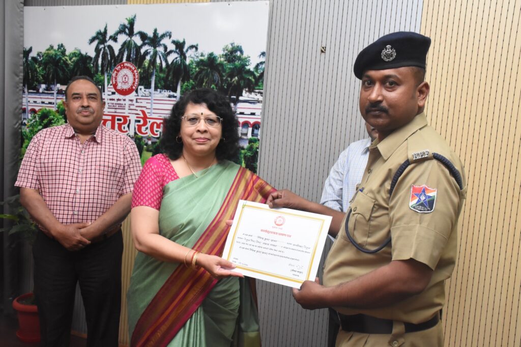 सराहनीय कार्य करने वाले RPF जवान को महाप्रबंधक पूर्वोत्तर रेलवे सुश्री सौम्या माथुर द्वारा उक्त स्टाफ को आज पुरस्कृत किया गया