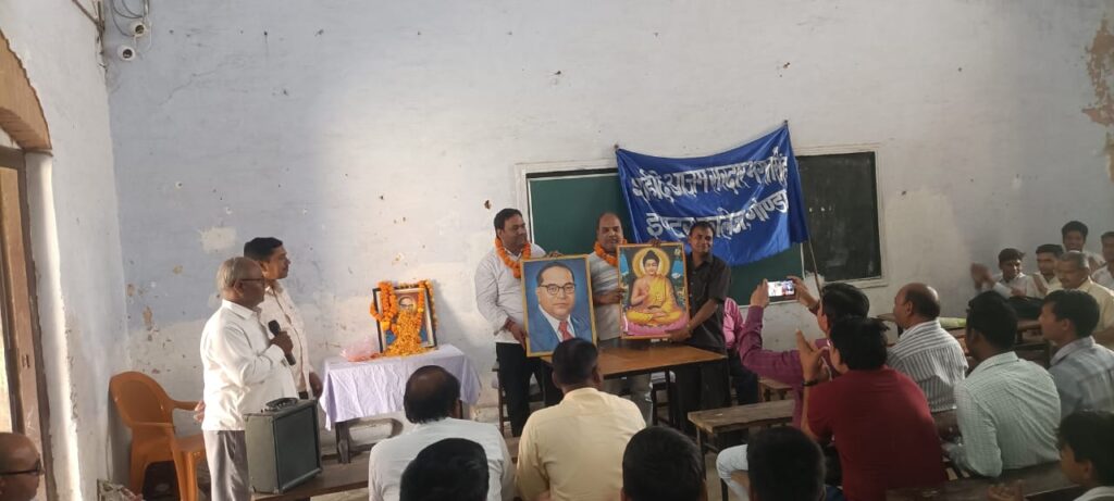 गोण्डा शहीदेआजम सरदार भगत सिंह इण्टर कालेज में बाबा साहेब डा. अम्बेडकर की 133 वीं जयंती की पूर्व संध्या पर कार्यक्रम आयोजित हुआ.सर्वप्रथम बाबा साहेब डा. अम्बेडकर के चित्र पर संस्था के प्रधानाचार्य राजकरन वर्मा एवं उप प्रधानाचार्य शैलेन्द्र कुमार मिश्र ने माल्यार्पण एवं पुष्पार्पण किया. प्रवक्ता रमेश विमल ने क्रमशः बाबा साहेब एवं तथागत बुद्ध की प्रतिमा भेंट किया. अध्यक्षता करते हुए प्रधानाचार्य राजकरन वर्मा ने कहा कि डा. अम्बेडकर महापुरुष है इनके बारे विस्तृत अध्ययन करके ही अपने बिचार शेयर करें.उप प्रधानाचार्य शैलेन्द्र कुमार मिश्र ने कहा कि बाबा साहेब को भारत रत्न से विभूषित होना देश के लिए गर्व है. प्रवक्ता रमेश विमल ने कहा कि भारत विविधताओं का देश है सबसे पहले देश के नागरिक भारतीय हैं, कैम्प अम्बेसडर छात्र निर्भय श्रीवास्तव ने कहा कि डा. अम्बेडकर भारतीय संविधान के रचयिता है डा. श्री चन्द्र ने कहा कि ड्राफ्टिंग कमेटी के अध्यक्ष के रूप में 2 वर्ष 11 माह 18 दिन में संविधान बनाया. राधे श्याम सोनकर एवं रविन्द्र भारती ने भी बिचार रखे. हिन्दी प्रवक्ता राजेन्द्र प्रसाद ने अम्बेडकर गीत प्रस्तुत कर मन मोहा. कार्यक्रम में लालचंद्र चौधरी, वंशीलाल सरोज, राजेन्द्र श्रीवास्तव, विनोद शुक्ल, बीबी मिश्र, विपिन वर्मा, केपी शुक्ल, हिमांशु पाठक,मोनिका पाण्डेय, जयंती ठाकुर, शिव प्रसाद, जेएन यादव, राहुल यादव, मनीराम शिक्षकों सहित छात्रों का सक्रिय योगदान रहा. संचालन शम्भू शरण शुक्ल ने किया. मिष्ठान वितरण एवं फल वितरण के बाद कार्यक्रम का समापन हुआ.