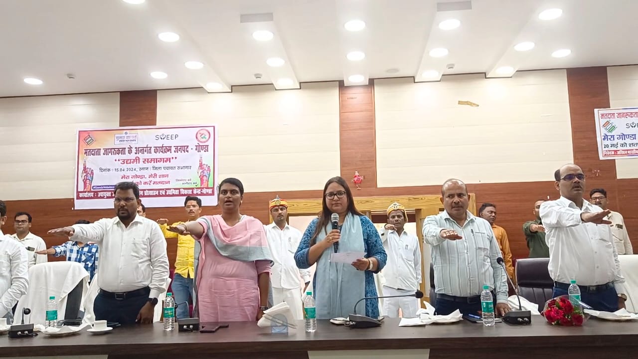 गोण्डा जिलाधिकारी नेहा शर्मा की अध्यक्षता में जनपद के व्यापार एवं उद्योग बन्धु के पदाधिकारी अन्य मतदाताओं को करेंगे जागरूक। लोकसभा सामान्य निर्वाचन-2024 के दृष्टिगत जनपद में मतदान प्रतिशत बढ़ाने के उपलक्ष्य में जिलाधिकारी की एक अनूठी पहल व्यापार व उद्योग बन्धु पदाधिकारियों के साथ संवाद कार्यक्रम का आयोजन किया गया। वहीं बताते चले कि व्यापार एवं उद्योग बन्धु के पदाधिकारी द्वारा जनपद के विभिन्न संस्थानों एवं आमजन मानस को शतप्रतिशत मतदान करने के संबंध में जागरूक करेंगे।
