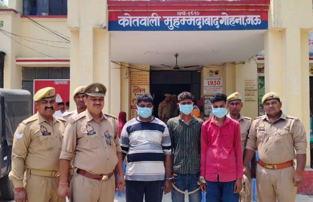 मुहम्मदाबाद गोहना ÷ मऊ : स्थानीय कोतवाली पुलिस ने हाल ही में चोरी की वारदातों में शामिल तीन चोरों को मुठभेड़ के बाद गिरफ्तार कर लिया गया। इनके पास से चोरी के सामान सहित कट्टा व कारतूस भी बरामद किया गया है। जांच परख के उपरांत इन्हें संबंधित धाराओं में चालान कर दिया गया।