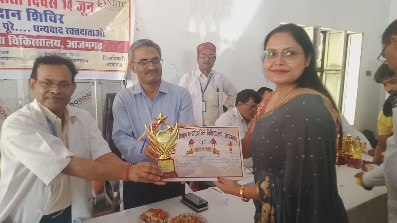 विश्व रक्तदाता दिवस” 14 जून को मनाये जाने के संबंध में विस्तृत दिशा निर्देश प्राप्त है। प्राप्त दिशा निर्देशानुसार रक्तदान के 20 वर्ष पुरे होने पर “धन्यवाद रक्तदाताओ ” स्लोगन पर दिनाकं 14 जून 2024 को जिला रेडक्रास सोसायटी मण्डलीय जिला चिकित्सालय आजमगढ़ में प्रातः 10.00 बजे एक कार्यक्रम का आयोजन किया गया। कार्यक्रम में जिलाधिकारी आजमगढ़ महोदय मुख्य अतिथि एवं मुख्य चिकित्साधिकारी- आजमगढ़ महोदय विशिष्ट अतिथि के रूप में एवं प्रमुख अधीक्षक मण्डलीय जिला चिकित्सालय, प्रभारी अधिकारी ब्लड बैक, रक्त केन्द्र के समस्त कर्मचारी तथा जनपद आजमगढ़ के विभिन्न रक्दान करने वाली संस्थायें उपस्थित हुए। कार्यक्रम में मुख्य चिकित्साधिकारी आजमगढ़ महोदय के द्वारा उपस्थित सभी लोगो को रक्त दान के महत्व के बारे में जागरूक किया गया एवं रक्तदान करने के लिए शपथ दिलाया गया। जिलाधिकारी महोदय के द्वारा रक्तदान करने वाली संस्था श्री संतनिराकरी मिशन के संयोजक श्री राजन प्रसाद जो सबसे अधिक रक्तदान कराया गया के साथ कुल 38 रक्तदान कराने वाली संस्थाओं को मोमेन्टो एवं प्रशत्रि पत्र देकर सम्मानित किया गया 14 जून 2024 “विश्व रक्तदाता दिवस” के शुभ अवसर पर कुल 49 लोगो के द्वारा रक्तदान किया गया, जिन्हे प्रमुख अधीक्षक मण्डलीय जिला चिकित्सालय चिकित्सालय आजमगढ़ के द्वारा धन्यबाद दिया गया एवं प्रशित्र पत्र दिया गया। प्रमुख अधीक्षक मण्डलीय जिला चिकित्सालय आजमगढ़ महोदय के द्वारा उपस्थित लोगो को बताया गया कि रक्त मानव जीवन का आधार है। इस लिए रक्तदान करना बहुत पून्य का काम है और इसे सबसे महान काम में माना जाता है क्योकि रक्तदान करने से हम किसी की जिन्दगी बचाते है। रक्त शरीर के बाहर तैयार नही किया जाता है, यह सिर्फ मानव शरीर से ही प्राप्त किया जाता है। अतः रक्तदान के महापर्व में निश्चित रूप से भागकर रक्तदान करे ताकि जरूरतों को समय से पूरा कर के लोगो की जान बचायी जा सके। इसी क्रम में दुर्गा शक्ति सेवा ट्रस्ट के कार्यकत्रिओं द्वारा भी रक्तदान किया गया इस मौके पर संस्था के अध्यक्ष ने कहा कि रक्तदान महादान होता है इससे बढ़कर कोई दान नहीं होता है हमारी संस्था सामाजिक कार्य करती है और यह भी एक सामाजिक कार्य ही है अगर हमारे सामाजिक कार्यकर्ता अपना ब्लड डोनेट करते हैं तो किसी जरूरतमंद की जान बच सकती है वहीं उन्होंने कहा कि हम लोग पूरे साल ब्लड डोनेट करते रहेंगे ताकि हम लोगों के जीवन की रक्षा कर सके और क्या कुछ कहा है उन्होंने आप सुनिए