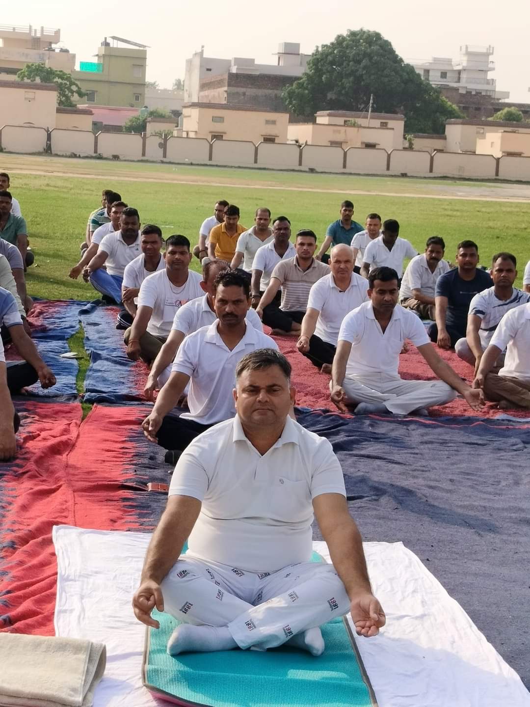 उत्तर प्रदेश सरकार द्वारा 21 जून को अंतर्राष्ट्रीय योग दिवस प्रदेश के परिप्रेक्ष्य में 15 से 21 जून तक प्रत्येक जनपद में योग सप्ताह के आयोजन कराने हेतु प्राप्त निर्देश के क्रम में रिजर्व पुलिस लाइन, आजमगढ़ में श्रीमान पुलिस महानिरीक्षक आजमगढ़ परिक्षेत्र आजमगढ़ के निर्देशन में आज दिनांक 15.06.2024 को *पुलिस अधीक्षक आजमगढ़ अनुराग आर्य* द्वारा पुलिस लाईन आजमगढ़ में योगाभ्यास सप्ताह का शुभारम्भ कराया गया योगाभ्यास का अभियान दिनांक 15.06.2024 से *एक सप्ताह तक चलाया जायेगा जिसके क्रम में आज दिनांक 15.06.2024 को रिजर्व पुलिस लाइन आजमगढ़ में अपर पुलिस अधीक्षक यातायात आजमगढ़ विवेक त्रिपाठी की उपस्थिति में कुल लगभग 150 पुलिस कर्मियों को (प्रतिसार निरीक्षक 01, उ0नि0- 05, हे0का0/का0-133 व महिला आरक्षी-10)योग प्रशिक्षक अरविन्द द्वारा योगाभ्यास कराया गया