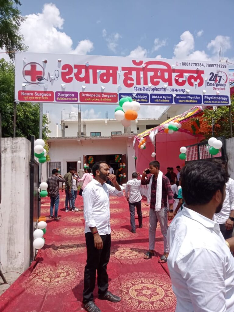 आजमगढ़ जनपद के राम बाजार सिकरौरा जुनैद गंज के पास श्याम हॉस्पिटल का भव्य उद्घाटन समारोह संपन्न हुआ। अस्पताल के डायरेक्टर डॉक्टर करूण श्रीवास्तव न्यूरो कंसल्टेशन हैं। अस्पताल के प्रबंधक गरुड़ श्रीवास्तव ने उद्घाटन समारोह में बहुत भव्य व्यवस्था बनाई थी डॉक्टर करूण श्रीवास्तव ने वार्ता के दौरान बताया कि उनका ध्येय गरीब दुखियों की सेवा करना है। उनके अस्पताल में 24 घंटे इमरजेंसी सुविधा रहेगी। ओपीडी फीस निशुल्क रहेगी कोई भी पैथोलॉजिकल जांच 50 परसेंट कम रेट में होगी। इनके यहां दूरबीन द्वारा पथरी का ऑपरेशन, एक्सीडेंटल केस 24 घंटे देखी जाएगी। हड्डी व जोड़ रोगों का विशेष इलाज व आपरेशन की सुविधा उपलब्ध है। न्यूरोलॉजी एवं फिजियोथैरेपी की भी अस्पताल परिसर में व्यवस्था है। नेत्र रोगियों के लिए भी नेत्र की जांच व चश्मों की व्यवस्था उपलब्ध है।24 घंटे एंबुलेंस व्यवस्था मिलेगी यह हॉस्पिटल अपने आप में सारी सुविधाओं से परिपूर्ण है यहां आधुनिक मशीनों द्वारा ऑपरेशन और जांच की व्यवस्था है। अब यहां के लोगों को दूर नहीं जाना होगा हॉस्पिटल परिवार की तरफ से बीच-बीच में कैंप लगाकर अच्छे डॉक्टर द्वारा मरीजों को निशुल्क इलाज किया जाएगा।