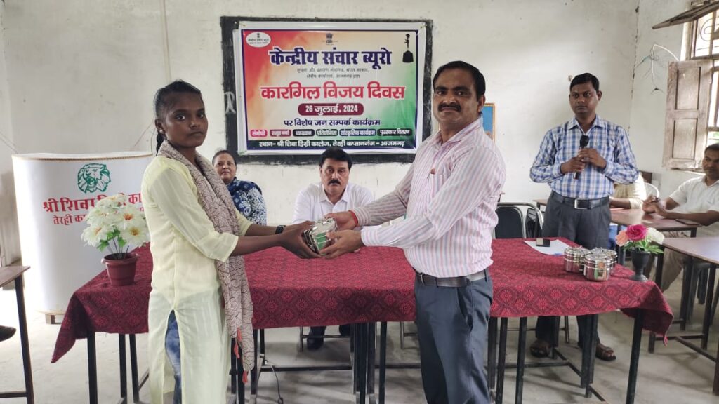 आजमगढ़ । केंद्रीय संचार ब्यूरो, सूचना एवं प्रसारण मंत्रालय, भारत सरकार, क्षेत्रीय कार्यालय, आजमगढ़ के द्वारा जनपद के महाराजगंज विकासखंड के कप्तानगंज में स्थित श्री शिवा डिग्री कॉलेज में कारगिल विजय दिवस के रजत जयंती के उपलक्ष में गोष्ठी एवं सांस्कृतिक कार्यक्रम का आयोजन किया गया।