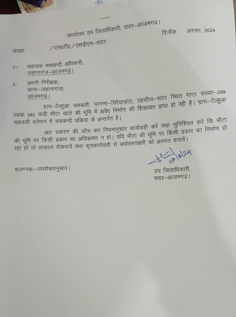 अवैध कब्जा रोकने की जिम्मेदारी थानाध्यक्ष और सहायक चकबंदी अधिकारी जहानागंज को सौंपी
