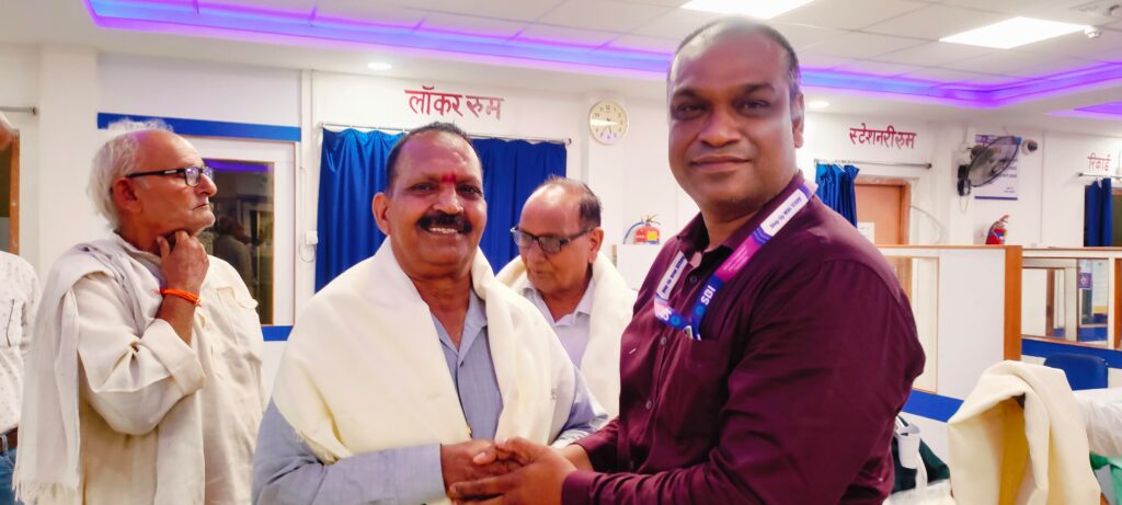 मऊ जनपद के नगर पंचायत भारतीय स्टेट बैंक कोपागंज शाखा में आज गुरुवार को पेंशनरों की ‘बैठक का आयोजन किया गया जिसमें SBI के सभी पेंशनरों को शामिल किया गया जिसमें शाखा प्रबंधक द्वारा सभी पेंशनरों को अंगवस्त्र देकर सम्मानित किया साथ ही साथ पेशनरो को अपने खाते को सुरक्षित रखने के लिए जरुरी टिप्स दिये सभी को अपने जॉइंट खाता को सुरक्षित रखने और खाते में नामिनी के लिए नाम डालने का भी सुझाव दिया गया शाखा प्रबन्धक आशुतोष कुमार सिंह ने बताया कि सभी पेंशनर जो अपना बहुमूल्य समय निकाल कर अपना सहयोग मुझे दिया है मैं उनको धन्यवाद करता हूं और साथ ही साथ यह भी कहा कि पेशनरो को अगर कोई समस्या होती है तो वह सीधे शाखा प्रबधक से बात करे उन सभी समस्याओं का समाधान किया जायेगा भारतीय स्टेटू बैक द्वारा विभिन्न योजनाओं जैसे अमृत दृष्टि, सावधि योजना जिसमें 7.75% व्याज दर मिलता है, सुगम पेशन लोन, म्युचुअल फंड SRB लाइफ यूनिटि प्लान स्मार्ट प्लेटिना प्लान आदि योजनाओं के बारे में विस्तृत जानकारी दी इस कार्यक्रम में शामिल रहे अखिलानंद राय , माधव मिश्रा, अशोक राय सुमित्रा देवी, कैलाश राप, राजेंद्र प्रसाद राय, आदि लोग उपस्थित रहे, कार्यक्रम का समापन धीरेन्द्रनाथ सिंह द्वारा कराया गया