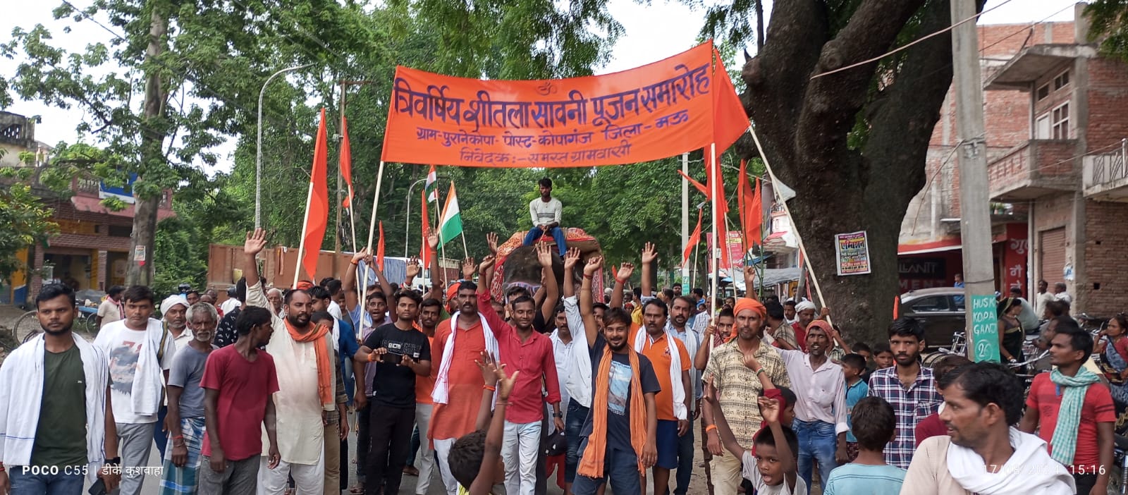 कोपागंज (मऊ) : कोपागंज के वार्ड नम्बर एक कोपा कोहना में त्रिवर्षीय श्रावणी पूजा का जलूस शनिवार को गाजे-बाजे हाथी घोड़े के साथ निकाली गई। इस दौरान चारों दिशाओं में स्थापित देवी देवताओं को लगातार नौ दिनों तक जल और धार चढ़ाने के बाद
