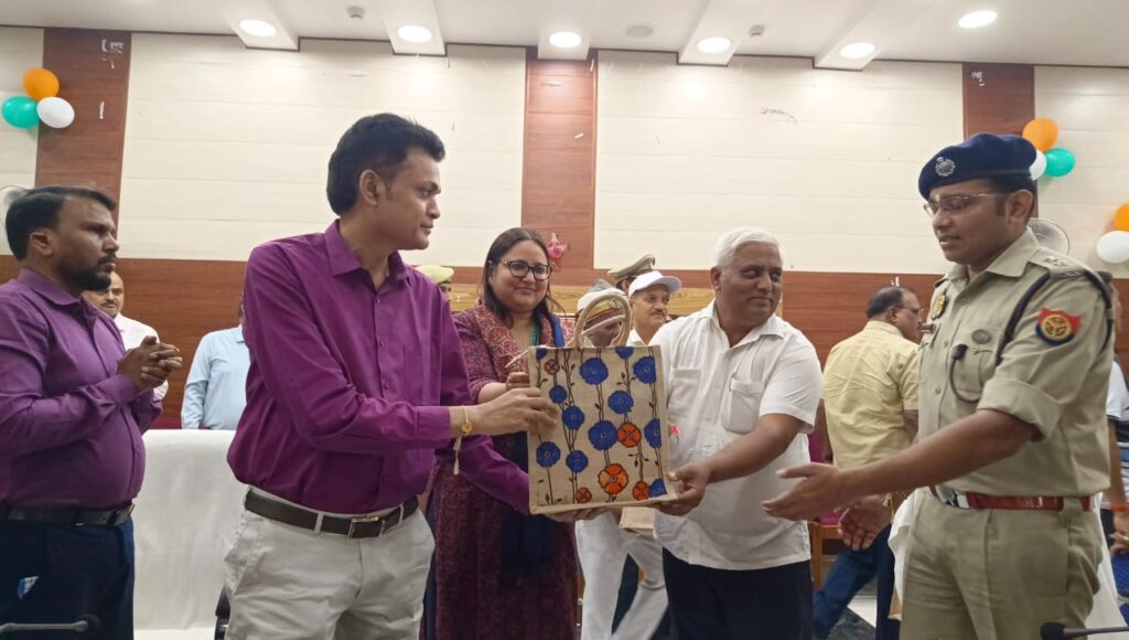मुख्य अतिथि के तौर पर पहुंचे आयुक्त शशि भूषण लाल सुशील ने सभी को रक्षाबंधन की बधाई देते हुये यातायात कर्मियों व मीडिया कर्मियों को अपने हाथों से आरोग्य किट प्रदान की। उन्होंने अपने संबोधन में कहा कि मीडिया सरकार की योजनाओं के प्रचार प्रसार मे मदद करती है वहीं यातायत कर्मी भी अपना अहम योगदान देते हुए समाज के लोगों को सुरक्षा प्रदान करते हैं उन्होंने कहा कि दोनों लोग अपने-अपने क्षेत्र में बेहतर तरीके से काम कर रहे हैं। उन्होंने सभी यातायात कर्मियों व मीडिया कर्मियों के द्वारा समाज के लिये किये जा रहे कार्यों की सराहना की उन्होंने कहा कि आप लोग लगातार बाहर क्षेत्र में रहकर बरसात हो गर्मी हो या सर्दी, अपने काम को बखूबी अंजाम देते हैं। अतः आप लोगों की सेहत का ध्यान रखने के लिए जिलाधिकारी की पहल पर आपको आरोग्य किट दी जा रही है जो कि आपका स्वास्थ्य के प्रति काफी लाभदायक होगी। साथी आयुक्त ने सभी लोगों से अपील करते हुए कहा कि सभी लोग यातायात नियमों का पालन अवश्य करें यातायात के नियमों का पालन करने से हम अपने व अपने परिवार को सुरक्षित रख सकते हैं।