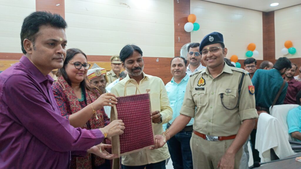 रक्षा सूत्र कार्यक्रम में पत्रकारों व यातायात कर्मियों को दी गई आरोग्य किट