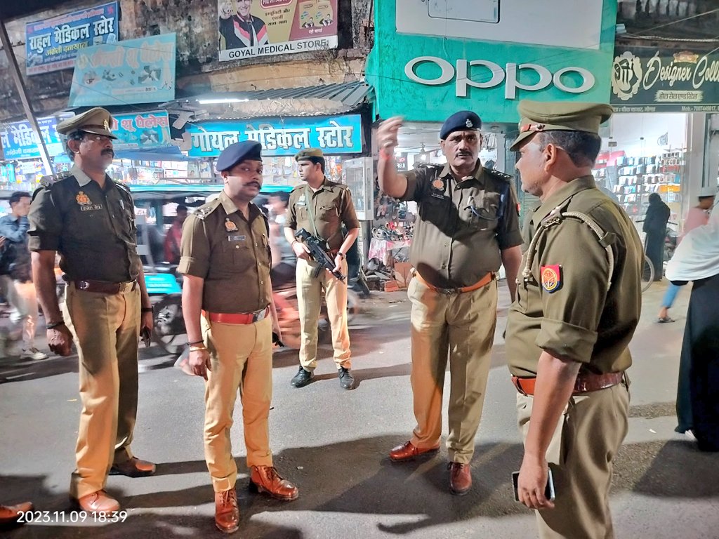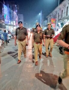 SP. ने आगामी त्योहारों धनतेरस/दिवाली/भाई दूज को सकुशल व शान्तिपूर्ण ढंग से सम्पन्न कराये जाने हेतु को0 नगर क्षेत्र में भारी पुलिस बल के साथ किया पैदल गस्त