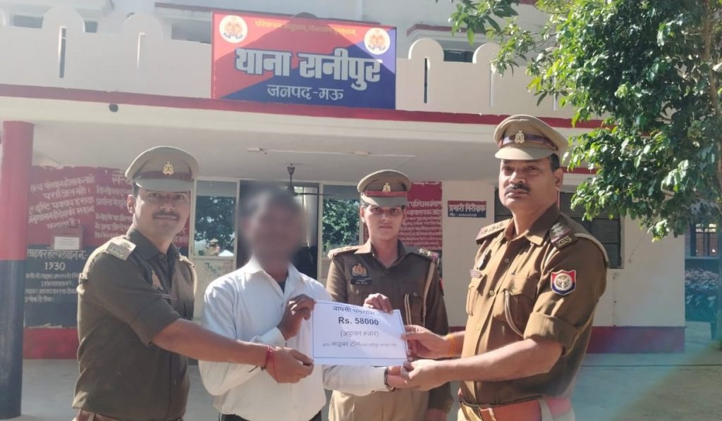 पुलिस अधीक्षक मऊ इलामारन जी के निर्देशन में अपराध/अपराधियों के विरूद्ध चलाये जा रहे अभियान के क्रम में साइबर अपराध के माध्यम से आंनलाइन ठगी गयी धनराशि वापस दिलाने व साइबर अपराध पर प्रभावी कार्यवाही के परिप्रेक्ष्य में थाना रानीपुर साइबर पुलिस टीम द्वारा सार्थक प्रयास करते हुए आंनलाइन ठगी के शिकार पीडित संगम भारती पुत्र श्रीपतिराम निवासी भुसुवा थाना रानीपुर जनपद मऊ के कुल 58000 रुपये की सम्पूर्ण धनराशि अथक परिश्रम कर उनके खाते में वापस कराया गया। आवेदक द्वारा उच्चाधिकारियों व थाना रानीपुर के अधिकारी/ कर्मचारियों का आभार व्यक्त किया । साइबर अपराध किसी के साथ और किसी भी प्रकार से घटित हो सकता है। बस जागरुक रहकर ही साइबर से बचा जा सकता है।