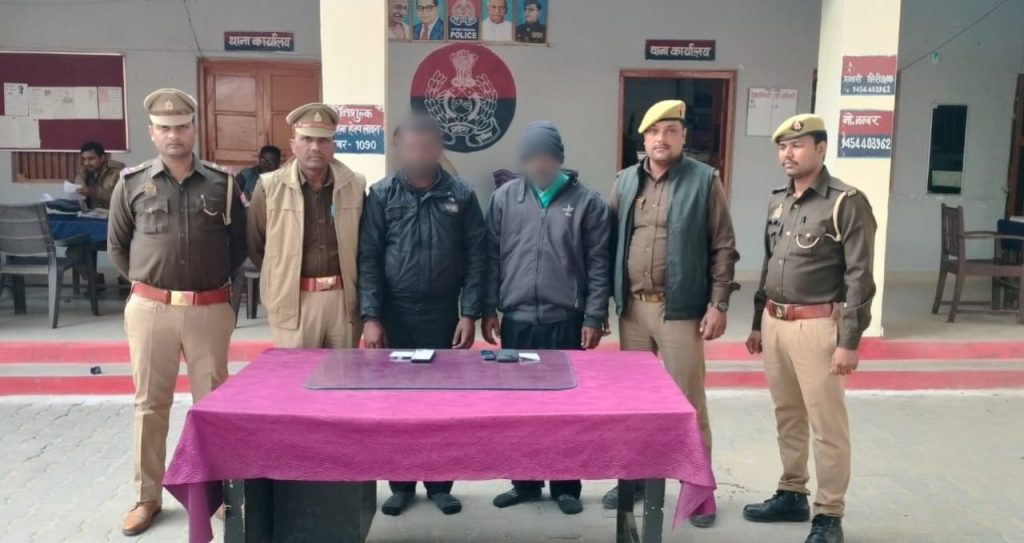 जनपद मऊ में दिनांक 15 दिसम्बर को थाना घोसी पुलिस द्वारा देखभाल क्षेत्र व चेकिंग के दौरान जरिये मुखबिर की सूचना पर मधुबन मोड़ के पास से मु0अ0सं0 471/24 धारा 318(4),316(2) बीएनएस में प्रकाश में आये अभियुक्तगण श्रषिमुनि शाह पुत्र महेन्द्र कुमार गुप्ता, अभिमन्यु गुप्ता पुत्र महेन्द्र कुमार गुप्ता निवासीगण गोविन्दपुर थाना महेशखुट जनपद खगडिया बिहार के कब्जे से चोरी की 8000 रुपये व 03 अदद मोबाइल फोन (02 स्मार्टफोन, 01 किपैड) बरामद किया गया । उक्त अभियुक्तो को गिरफ्तार कर चालान न्यायालय किया गया ।
