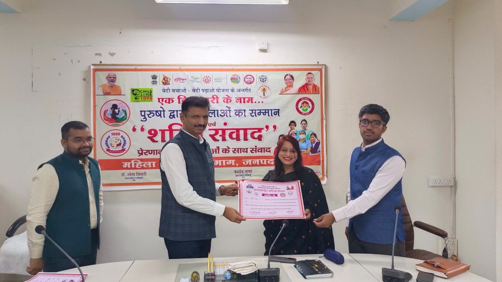जनपद मऊ के जिलाधिकारी प्रवीण मिश्र की अध्यक्षता में बेटी बचाओ बेटी पढ़ाओ योजनांतर्गत एक दिन नारी के नाम पुरुषों द्वारा महिलाओं को सम्मान एवं शक्ति संवाद का आयोजन कलेक्ट्रेट सभागार में संपन्न हुआ।