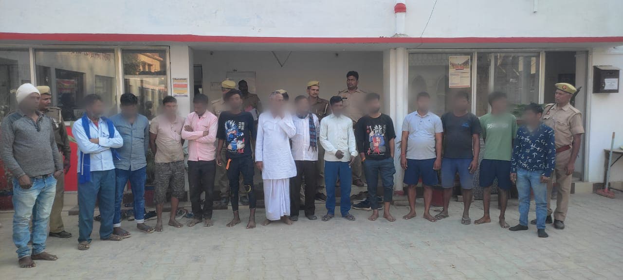 शांति/सुरक्षा व्यवस्था के दृष्टिगत पुलिस अधीक्षक मऊ इलामारन जी के निर्देशन में चलाये जा रहे अभियान के क्रम में थाना कोतवाली नगर पुलिस द्वारा आज 08 मार्च को शराब के ठेका के आस पास बैठ के पीने वालो के खिलाफ चलाये जा रहे अभियान के क्रम में कुल 22 व्यक्तियों सेराज अहमद पुत्र रेयाज अहमद निवासी हट्ठीमदारी, स्टीफन मशीह, अन्थोनी मशीह पुत्रगण अरूण मशीह, अरूण मशीह, प्रदीप मशीह, दिनेश मशीह पुत्रगण स्व0 विश्राम मशीह निवासी सहादपुरा, विजय चौहान पुत्र रमायण चौहान निवासी मुंशीपुरा, महेन्द्र पुत्र स्व0 शिवनाथ सैनी निवासी छोटी रहजनिया, प्रमोद शर्मा पुत्र स्व0 रामअवतार शर्मा निवासी किन्नूपुर, नियाज अहमद पुत्र अब्दुल वहिद निवासी पहाडपुरा, अमरनाथ शाहु पुत्र श्रीराम शाहु निवासी सहादपुरा, सौरभ सोनकर पुत्र मुंशी निवासी मठियाटोला समस्त थानागण कोतवाली नगर जनपद मऊ, राजेश चौहान पुत्र अर्जुन चौहान निवासी होलीपुर थाना घोसी, अभिषेक पुत्र रामजी, विजय शर्मा पुत्र राजेन्द्र शर्मा निवासीगण कोल्हार थाना दक्षिणटोला, अभिषेक निषाद पुत्र लट्ठू , आदित्यराज पुत्र सत्यराम प्रजापति निवासीगण सहरोज थाना कोपागंज, राजाराम पुत्र रामबचन, निवासी तागुनमार जितेन्द्र रामबडाई निवासीगण रजडिहा थाना हलधरपुर, विनोद राम पुत्र स्व0 हरदेव निवासी चान्दमारी थाना सरायलखन्सी, कृष्णकान्त यादव पुत्र रामसरीख यादव निवासी महासो थाना रानीपुर जनपद मऊ, चन्द्रभुषण सिंह पुत्र स्व0 रामसागर सिंह निवासी बाडाचवर थाना कैरिमुद्दीपुर जनपद गाजीपुर को गिरफ्तार कर चालान न्यायालय किया गया ।
