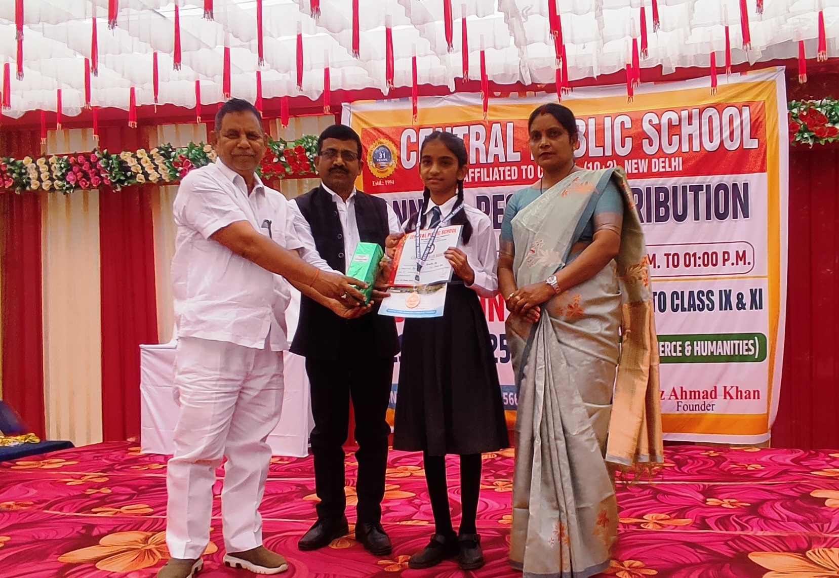विद्यालय की चेयरपर्सन तरन्नुम खानम, प्रबन्धक नवाज अहमद खाँ, डॉ० आजाद अहमद खॉ, एवं प्रधानाचार्या सुश्री रेखा सिंह जी ने अपनी कक्षा/प्रतियोगिता में आने वाले टापर्स को मेडल, गिफ्ट एवं प्रमाण-पत्र देकर सम्मानित किया। इस अवसर पर विद्यालय के संस्थापक अयाज अहमद खॉ, शुभचितंक, सभी स्टाफ एवं काफी संख्या में अभिभावगण एवं छात्र/छात्राएँ उपस्थित थे।