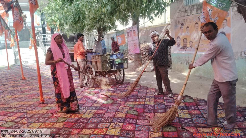 आजमगढ़ जनपद के जिला पंचायत राज अधिकारी जी के आदेश क्रम में विकास खंड के सभी ग्राम पंचायत में ग्रामीण सफाई कर्मचारियों द्वारा स्वच्छता अभियान चलाया जा रहा है स्वच्छता के प्रति लोगों को जागरूक किया जा रहा है इस समय जो तरह-तरह का रोग का प्रकोप चल रहा है उसे निस्तारण पाने के लिए विशेष सफाई अभियान चलाया जा रहा है आज दिनांक 24 मार्च 2025 को सहायक विकास अधिकारी पंचायत उमाकांत पाठक जी के आदेश क्रम में देखरेख में कलेक्ट्रीअंबेडकर पार्क जिला अधिकारी के कार्यालय के आसपास साफ सफाई करते हुए विशेष स्वच्छता अभियान चलाया जा रहा है जिससे कि संचारी रोकथाम नियंत्रण पाया जाए आज के साफ सफाई में गुलाब चौरसिया सुनील यादव रामबचन मोहम्मद असलम श्री कृष्णा यादव महेंद्र कुमार शर्मा साकरुन जान मोहम्मद बिट्टू लीलावती आदि लोग मौजूद रहे