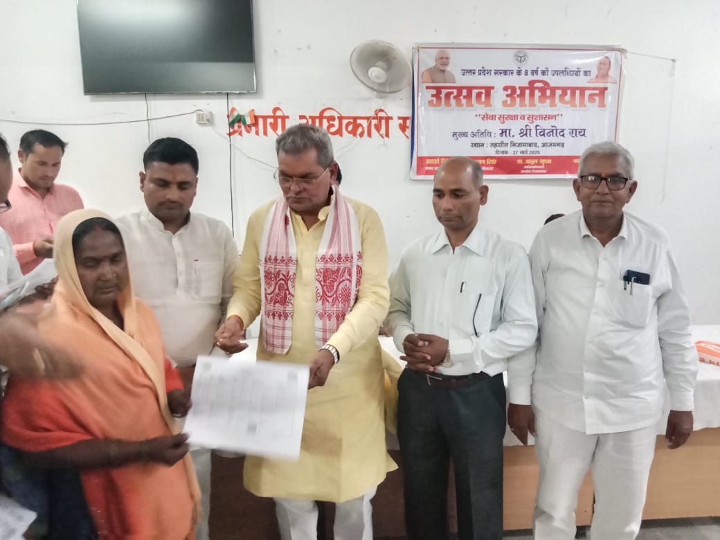 निजामाबाद आजमगढ़ निजामाबाद तहसील सभागार में आज़ गुरुवार को दोपहर एक बजे उत्तर प्रदेश सरकार के आठ वर्ष कि उपलब्धियों का उत्सव अभियान सेवा सुरक्षा व सुशासन के तहत कार्यक्रम का आयोजन किया गया था। कार्यक्रम के मुख्य अतिथि पूर्व जिला अध्यक्ष भाजपा विनोद राय थे और कार्यक्रम का संचालन लालधर यादव जिला मंत्री लेखपाल संघ ने किया है। भाजपा पूर्व जिला अध्यक्ष विनोद राय ने बताया कि डबल इंजन कि सरकार में लगातार चारों तरफ विकास कार्य हो रहा है । बगैर भ्रष्टाचार के सभी भर्तियां पारदर्शिता के साथ हो रही हैं जिससे प्रतिभावान लोग सरकारी नौकरी पा रहे हैं। किसानों को किसान निधि खाद बीज मुफ्त ट्यूबल विद्युत का मिल रहा है गरीबों को पक्का मकान बनवाया जा रहा है। विकलांग विधवा असहाय पेंशन मिल रही है सुरक्षा के लिए प्रशासन सदैव तत्पर रहता है गुंडा माफिया गिरी समाप्त हो गई बगैर किसी भेदभाव के सबको हर सरकारी सुविधा मिल रही है । इस अवसर पर तहसील प्रशासन द्वारा 22 लाभार्थी को घरोनी प्रमाण पत्र मुख्य अतिथि के हाथों वितरण किया गया है। पूर्व बार एसोशिएशन अध्यक्ष मनोज राय कहा कि डबल इंजन कि सरकार में लगातार विकास कार्य चल रहा है। प्रधानमंत्री नरेंद्र मोदी और उत्तर प्रदेश के मुख्यमंत्री योगी आदित्यनाथ कि सरकार गरीबों के उत्थान में लगी हुई है।इस अवसर पर उपजिलाधिकारी निजामाबाद डॉक्टर अतुल गुप्ता पूर्व बार एसोशिएशन के अध्यक्ष मनोज राय , योगेंद्र राय,भाजपा जिला मंत्री सन्तोष गौड़ मंडल अध्यक्ष तहबरपुर पंकज राय दुर्गा चौबे राम प्यारे यादव अशोक सिंह, राकेश पाण्डेय