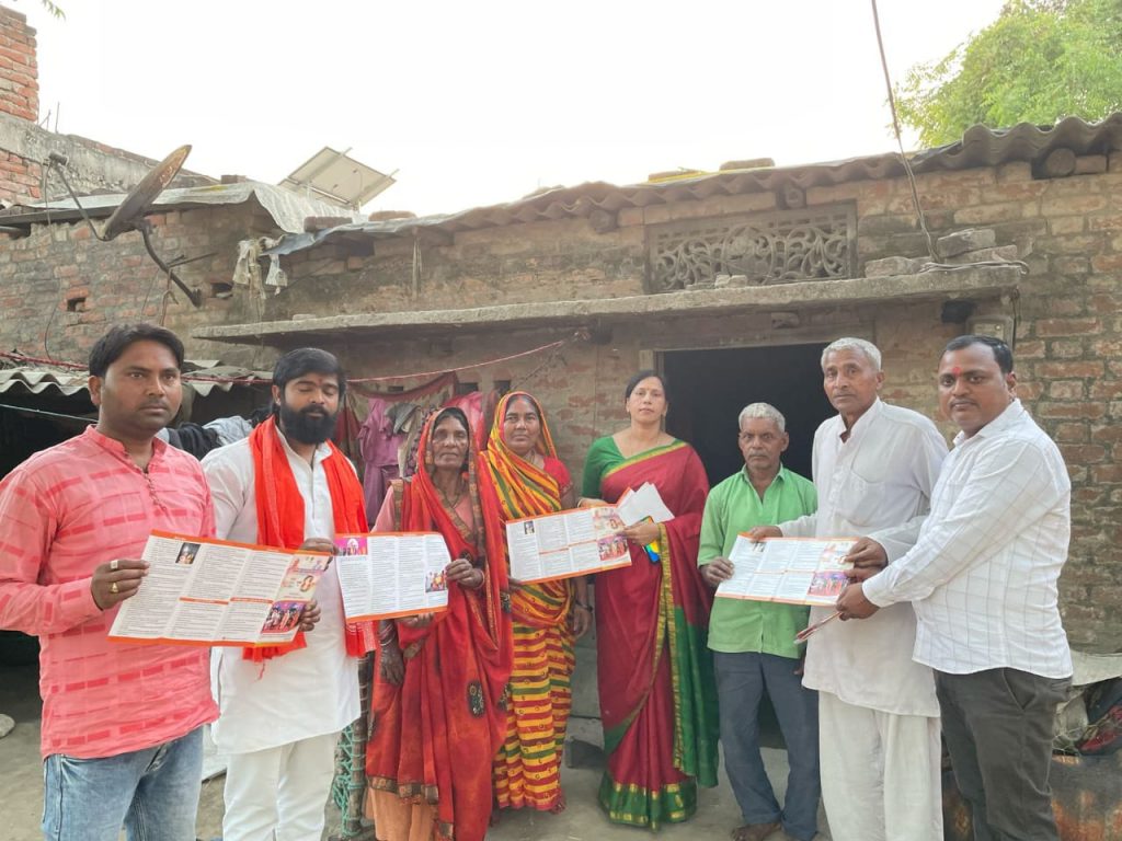 इंदारा।उत्तर प्रदेश शासन के सेवा, सुरक्षा तथा सुशासन के बेमिसाल 8 साल पूर्ण होने के उपलक्ष्य में घर-घर संपर्क अभियान चलाकर सरकार की जनकल्याणकारी योजनाओं की जानकारी जिला अध्यक्ष रामाश्रय मौर्य के निर्देश पर जिला भाजपा नेत्री प्रितुलता पांडेय ने भाजपा कार्यकर्ताओं के साथ लोगों को दी । इस अभियान के अंतर्गत जिला संयोजिका प्रीतुलता पांडेय ,दिनेश राजभर,बजरंगी राजभर,आरती , प्रियंका और सम्मानित कार्यकर्ता बंधुओं ने घर-घर जाकर प्रदेश सरकार की जनकल्याणकारी योजनाओं की जानकारी दी। जिसमें सेमरी जमालपुर,गगयापार,रामपुर, बीबीपुर, बहादुरपुर आदि गांव में संपर्क अभियान चलाकर भाजपा सरकार की नीतियों को घर घर जाकर लोगों को बताया