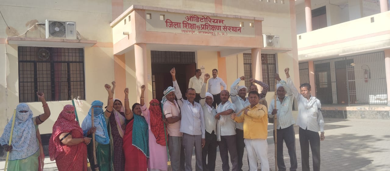 दिनांक 1 अप्रैल 2025 को ग्राम पंचायत जाफरपुर में सहायक विकास अधिकारी पंचायत के आदेश क्रम में देखरेख में आरटीओ ऑफिस से डायट के प्रांगण तक विद्यालय में स्वच्छ भारत मिशन के तहत विशेष स्वच्छता अभियान चलाया जा रहा है नियंत्रण अभियान के तहत लगातार अपने कर्तव्यों का निर्वहन करते हुए अपने हक की लड़ाई के लिए काली पट्टी बांधकर विरोध जताते हुए हमें चाहिए सिर्फ पुरानी पेंशन सरकार से अपने हक की लड़ाई के लिए विरोध जताते हुए आज के साफ सफाई में ग्रामीण सफाई कर्मचारी संघ के जिला अध्यक्ष सीपी यादव वरिष्ठ जिला उपाध्यक्ष गुलाब चौरसिया पल्हनी ब्लॉक के महिला वीरांगना ब्लॉक अध्यक्ष सीमा मौर्य सरिता अनीता सुमित्रा कुसुम सेक्टर प्रभारी राजबहादुर चौधरी श्री राम राजेश कुमार रामबचन अरविंद अखिलेश कुमार ममता दिलदार विजय बहादुर इरफान अखिलेश सुनील यादव लीलावती रामबचन आदि लोग मौजूद रहे डायट आरटीओ ऑफिस ग्राम पंचायत जाफरपुर विकासखंड पल्हनी जनपद आजमगढ़