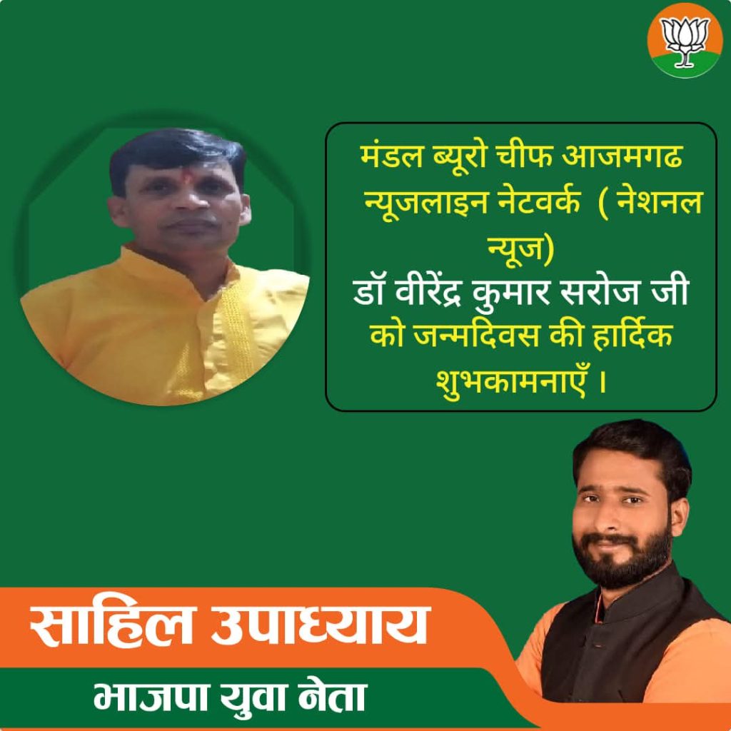 आजमगढ /वरिष्ठ पत्रकार डा.बीरेन्द्र कुमार सरोज के जन्मदिन पर युवा भाजपा नेता व समाजसेवी साहिल उपाध्याय ने दी बधाई देते हुए बताया कि आपकी निष्पक्ष और निर्भीक पत्रकारिता ने सच्चाई और ईमानदारी की नई मिसाल कायम की है। समाज के लिए आपकी यह सेवा और प्रतिबद्धता हम सभी के लिए प्रेरणादायक है। आपके इस विशेष दिन पर हम ईश्वर से आपके उत्तम स्वास्थ्य, दीर्घायु और अपार सफलता की कामना करते हैं।